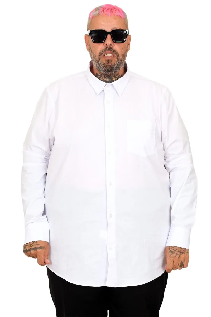 Голема бела кошула, Машка, Долги Ракави – Класична Модел Грминирано Перење, Со Џебови