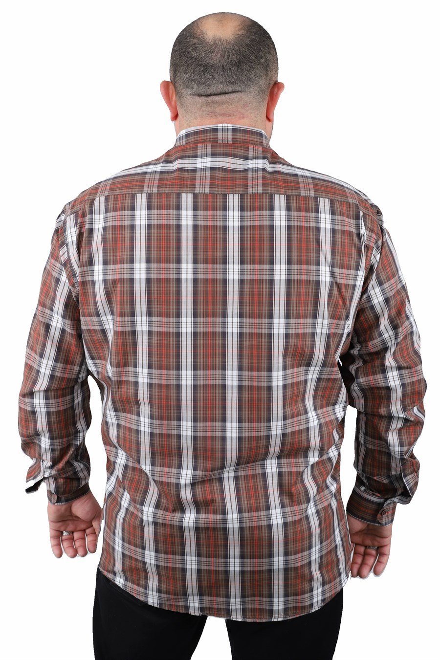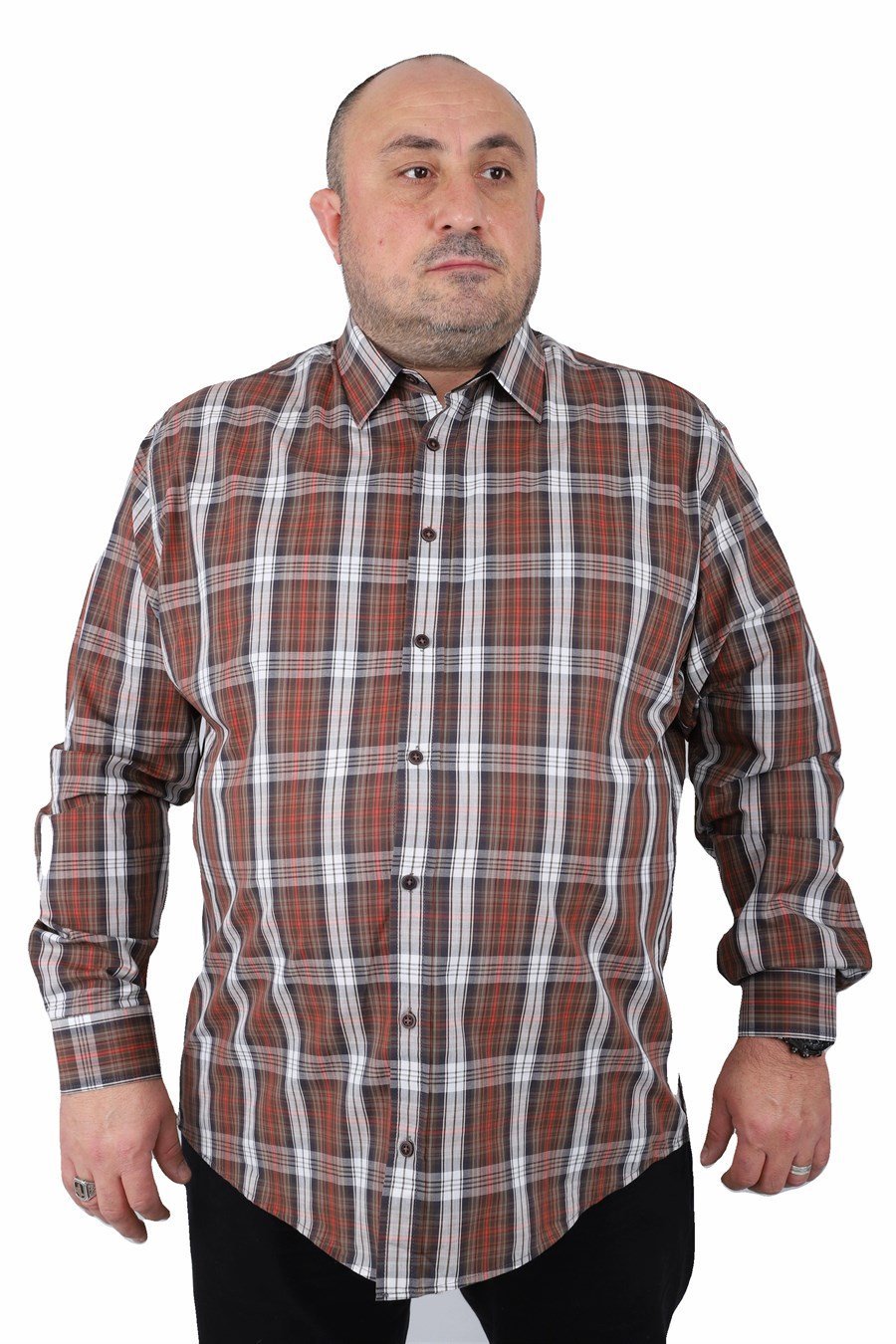 Кафеава карирана машка кошула од 100% памук, идеална за секојдневно носење и лежерен стил. Удобна, дишлива и оптимизирана за плус сајз крој, совршен избор за практична и модерна комбинација во сите сезони.